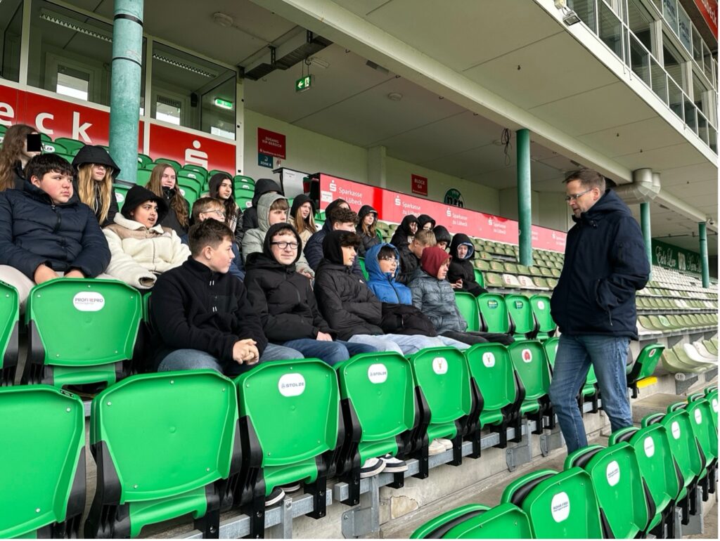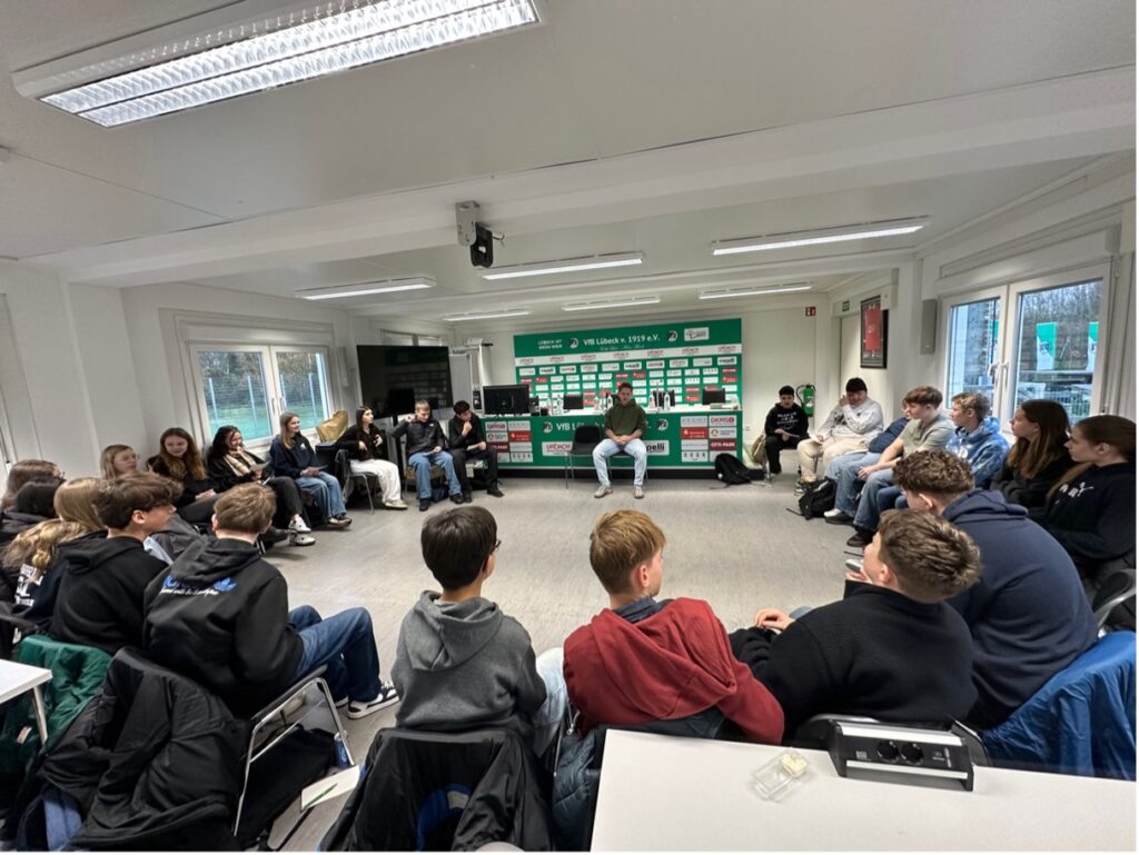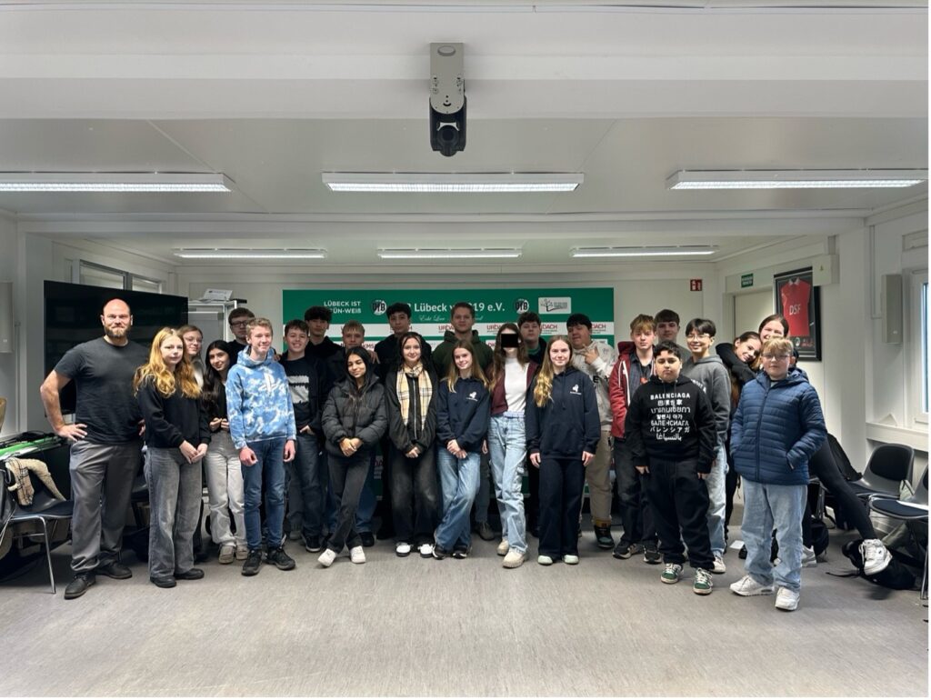 Vom 10. bis 19.11.2025 öffnete das Stadion Lohmühle seine Tore für Schülerinnen und Schüler der achten Klassen der Schule Tremser Teich. Im Workshopformat und über viele kreative Methoden und Spiele wurde den Jugendlichen an jeweils drei Tagen die Themen Fairness, Respekt und Teamgfähigkeiten nähergebracht. Organisiert über den Partner Fanprojekt Lübeck und in Kooperation mit dem VfB Lübeck gab es sogar die Highlights einer Stadionführung und eines Interviews mit verschiedenen Profifußballern.